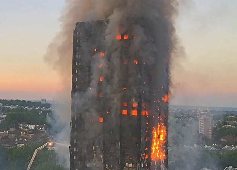 2、警方考慮以誤殺罪起訴承包商Rydon公司與KCTMO管理公司。為了節省29.3萬英鎊,在大樓裝修時使用了由外國進口、廉價易燃的鋁塑板,當中的聚乙烯塑料板在燃燒後產生強烈的煙囪效應,使火勢迅速蔓延整棟大樓。